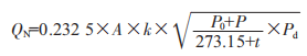 式中:P0为当地大气压力(Pa):P为静压(表压,Pa):P+为取样装置产生的差压(Pa):1为介质温度(℃):A为流通面积(82):k为流量系数,预置为0.53。