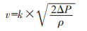 式中:,为流体流速(m/s);1为装置流量系数;AP为差压(Pa);p为流体密度(kg/m3)。